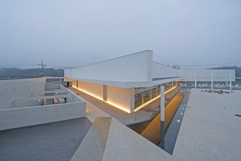 여주 카페 바하리야는 2022년에 한국건축가협회상을 수상할 만큼! 아름다운 건축물이 특징입니다. 이집트 바하리야 사막의 영감을 받아 백사막과 물, 빛의 3가지 테마로 삼각형의 멋진 공간을 조성해놓았습니다. 하늘이 파란 날도, 흐린 날도, 눈이 오는 날도 전부 예쁘더라고요.